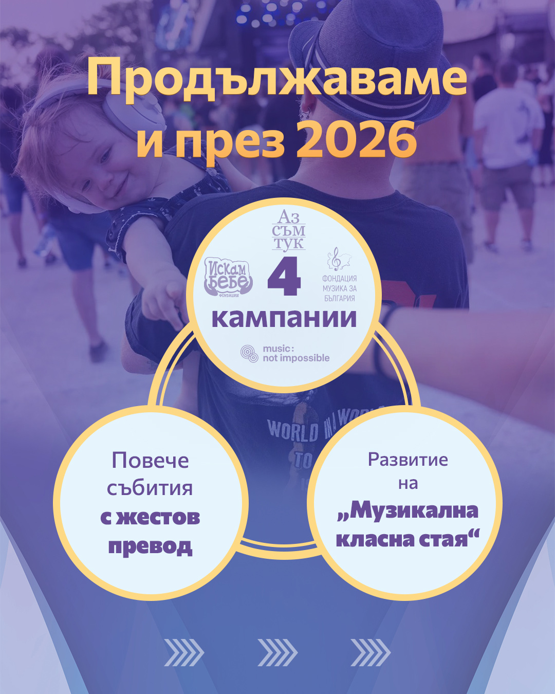 Музиката има силата да прави повече от това да вълнува, тя може да вдъхновява действия, да създава промяна, да носи реална подкрепа. И през новата концертна година Fest Team продължава и доразвива своята социална ангажираност не чрез символични жестове, а чрез устойчиви инициативи с измерими резултати. През 2026 програмата включва четири кампании, всяка от които фокусира върху различен кръг от хора — тези, които чакат или се надяват за нов живот, децата, за които музиката да стане по-достъпна, възрастните, които заслужават да се чувстват видими и приети и хората с увреден слух, за които концертното преживяване доскоро беше невъзможно.